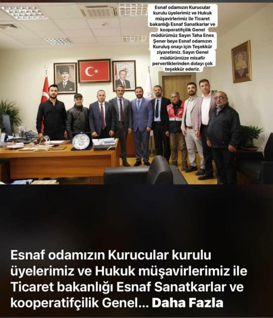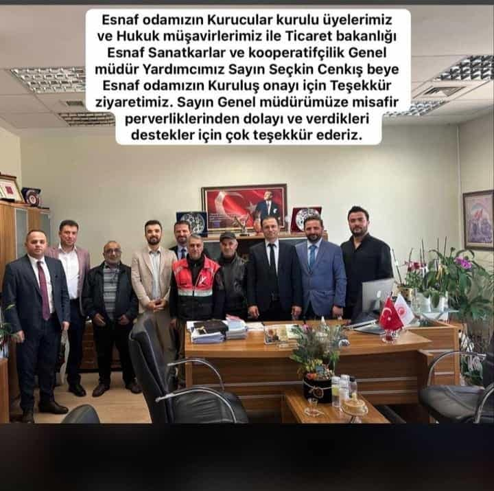 TÜRKİYE'NİN İLK KURYELER ESNAF ODASI'NIN KURULMASINDA DESTEKLERİNİ BİZLERDEN ESİRGEMEYEN TİCARET BAKANLI PERSONELİNDEN TUTUN GENEL MÜDÜRÜNE KADAR YAPTIKLARI İLGİ VE ALAKALARINDAN DOLAYI YÖNETİM KURULU OLARAK TEŞEKKÜR ETMEYE GİTTİK.